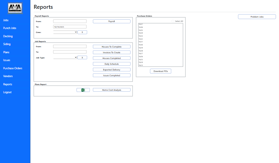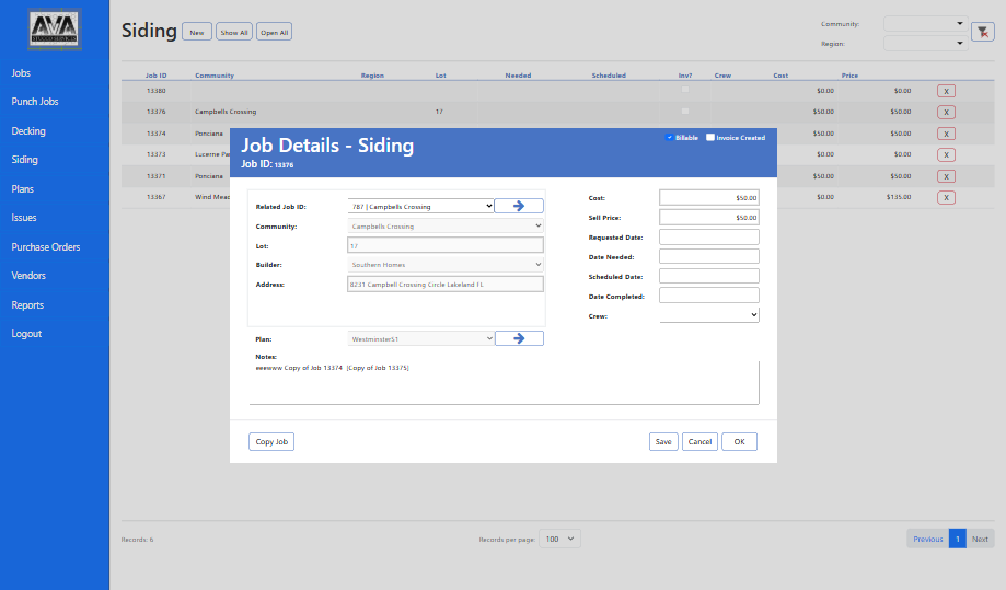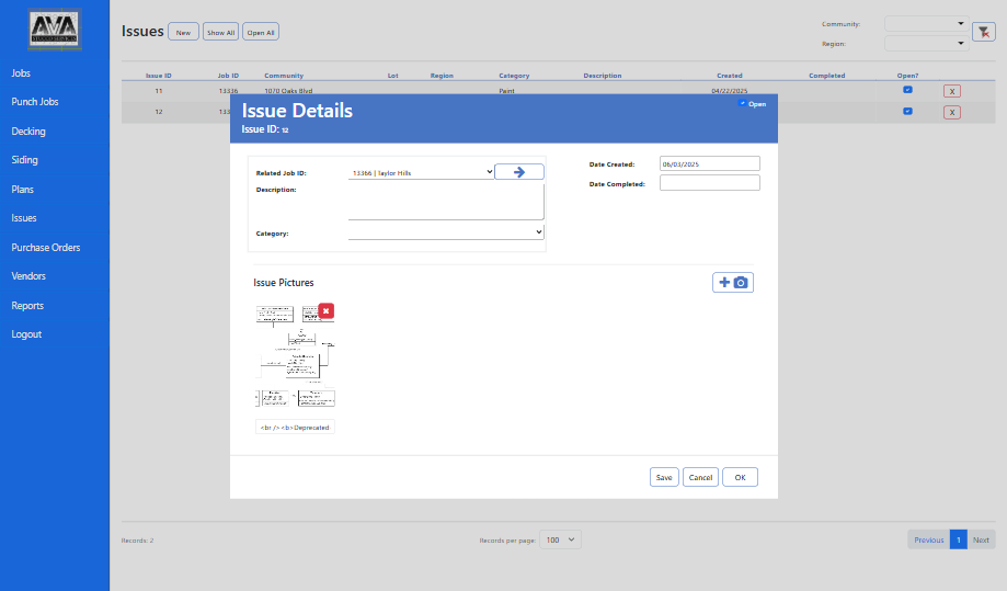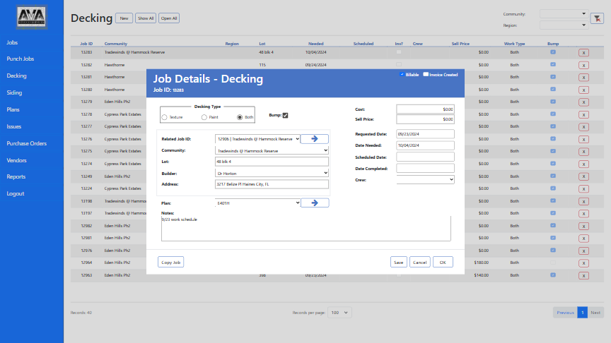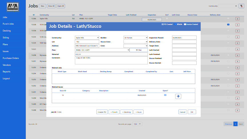 At its core, the system revolves around a dynamic job management module, where every project โ or โjobโ โ can be created, monitored, and updated in real time. Each job record includes detailed breakdowns such as punch jobs, decking tasks, siding activities, and issues tracking, giving teams a complete picture of project progress and on-site challenges.