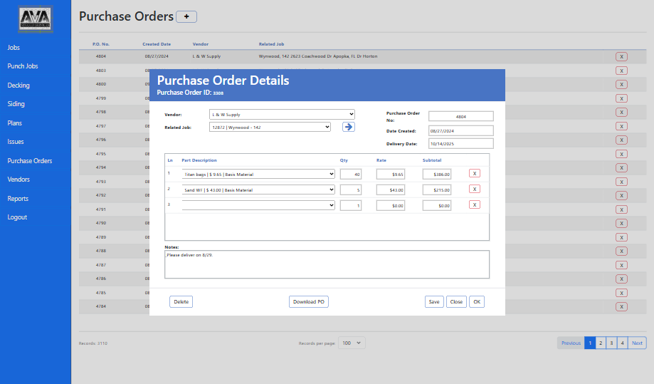 The AVA Stucco & Services Management Platform is a comprehensive business operations system developed to streamline project management, workforce coordination, and vendor relationships for construction and exterior service companies.