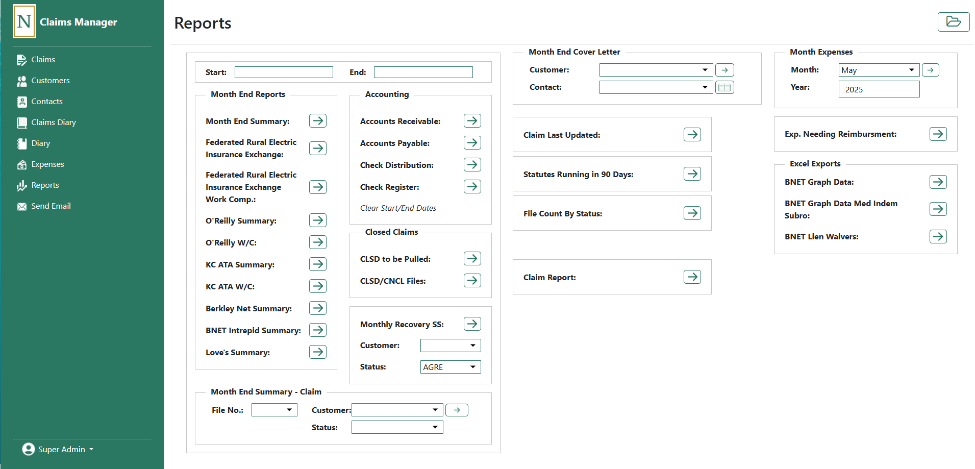 Users can easily create new claims, attach supporting files such as invoices, images, and reports, and monitor real-time claim status through a user-friendly dashboard. The system offers structured workflows to review submissions, verify data, and process approvals. Advanced filtering and search options make it easy to locate claims by type, client, or stage.