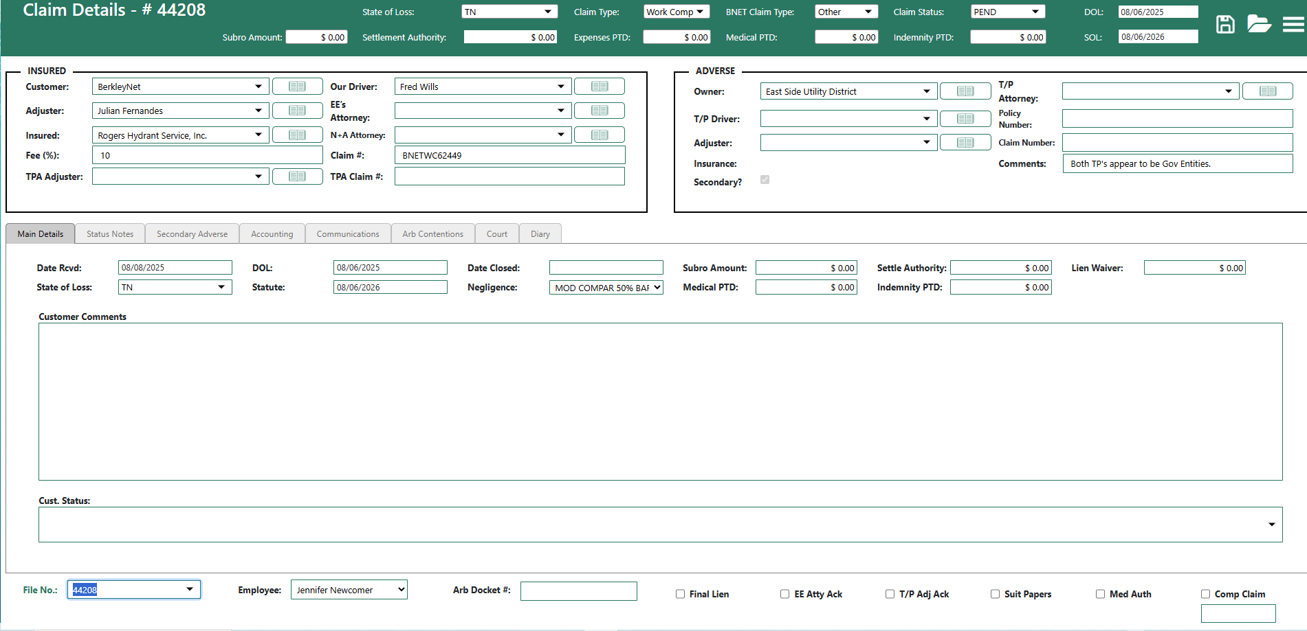 Newcomer & Associates Claim Management System