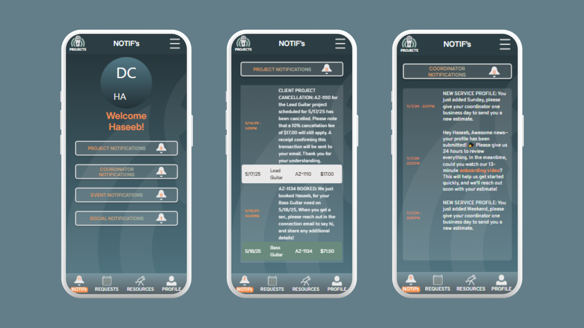 At the heart of the app is a powerful Admin Portal, where coordinators can view key project stats, manage bookings, chat internally, approve or decline requests, and oversee all users and activity in real time. The portal also features automated notifications (with sound alerts), in-app tutorials using videos and flowcharts, and a Blast section.